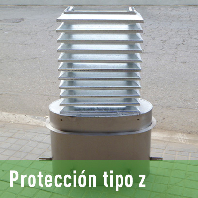 Protección interior tipo z, consistente en rejas de ventilación interiores a la carcasa, constituidas de perfil tipo z. Ideal para evitar la caída de agua al interior del recinto a ventilar.